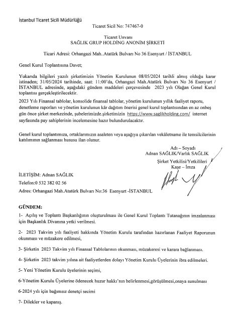 • 2024/2 Ertelenen Olağan Genel Kurul Toplantı Daveti